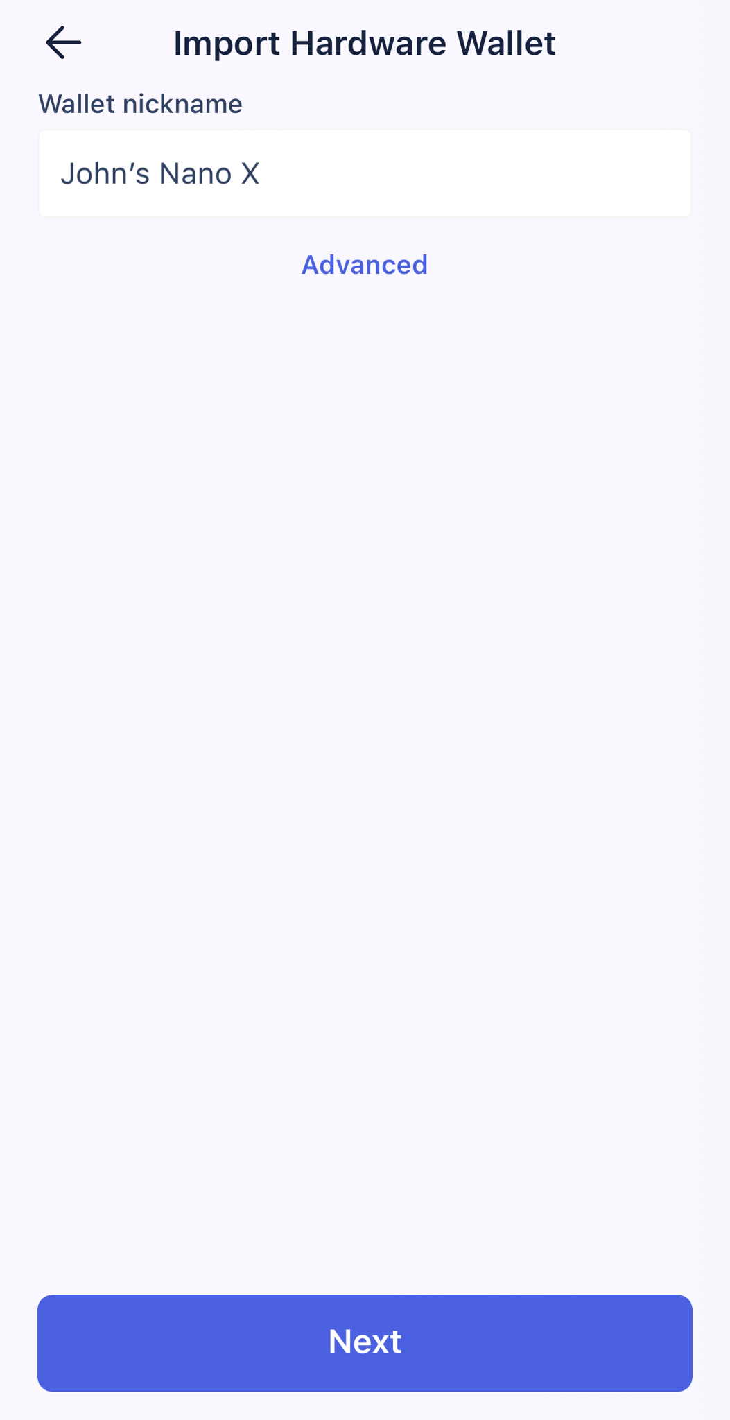 NOTE: You should already have connected your Ledger to your handheld device by cable (or Bluetooth, if you have the Nano X).